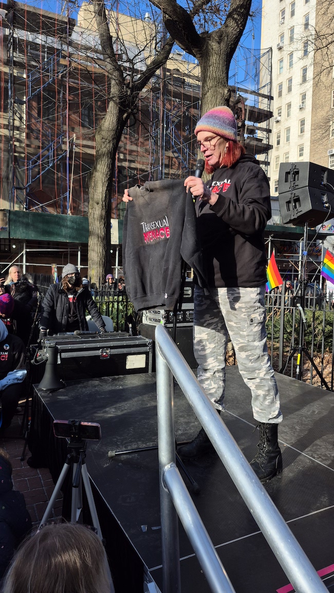 Shortly after the start of the new administration, a blast from the past came roaring back to life with greater than ever relevance. Denise Norris and Riki Wilchins, who co-founded The Transgender Menace back in 1993, decided that it was time to re-energize the group and reach out to young TGNCNB people utilizing the communication tools Gen Z has pioneered, inspiring them with their direct-action approach. On this year’s Trans Day of Visibility, March 31, scores of events and actions took place across the nation, several in New York City alone.