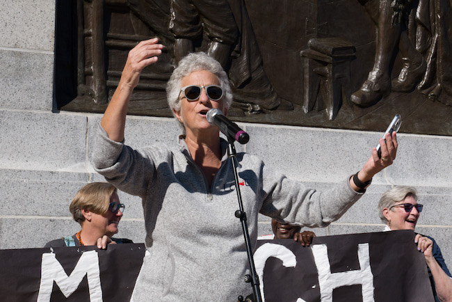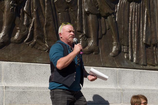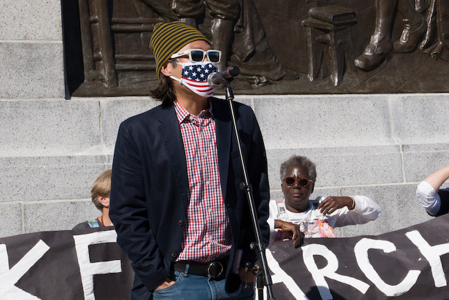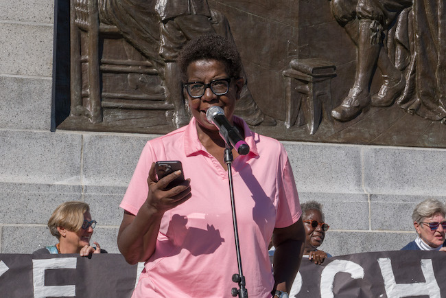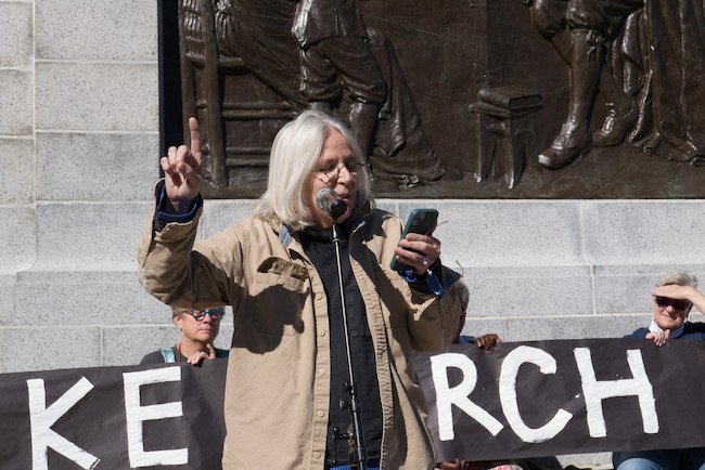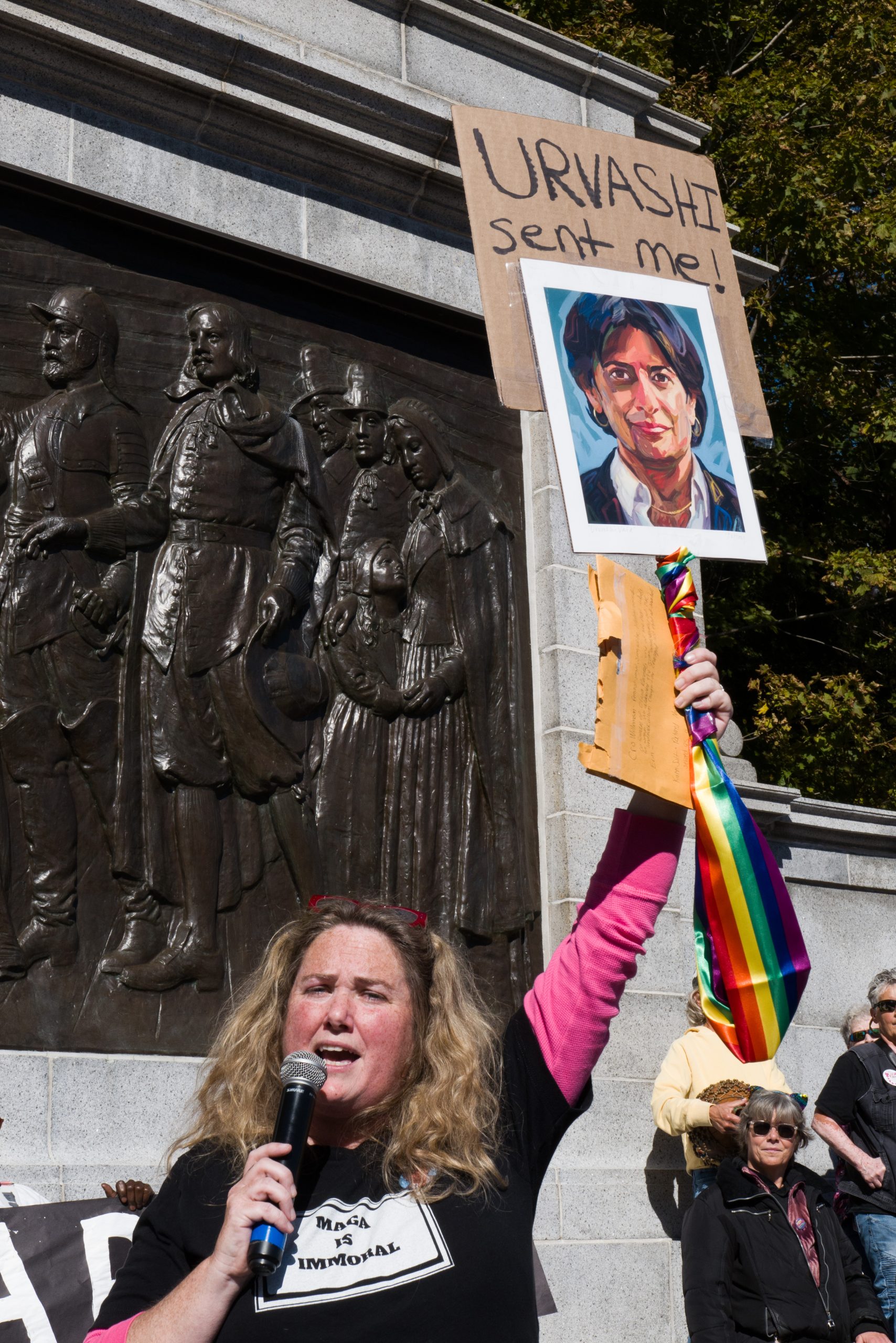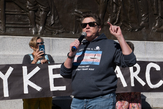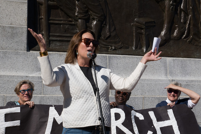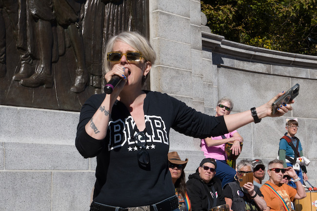 There, as local LGBTQ activists and electeds spoke, the crowd grew in size to some 1,200–a peaceful, lively, determined group happy to raise their voices to save democracy from any wannabe king.