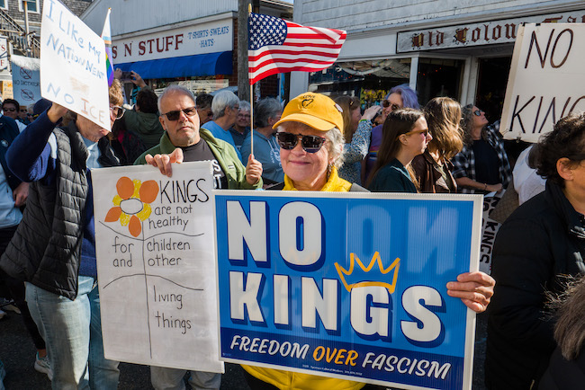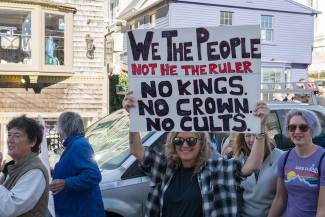 PHOTOS & TEXT BY DONNA ACETO | An October 18 rally held in Provincetown, MA counted itself among the over 2,700 events worldwide taking place as part of the No Kings movement. “More than 7 million of us,” said event organizers, ”rose up to say: America has no kings, and the power belongs to the people.”