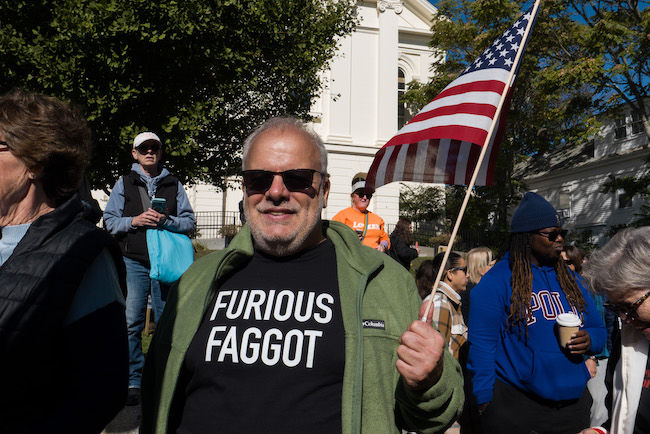 There, as local LGBTQ activists and electeds spoke, the crowd grew in size to some 1,200–a peaceful, lively, determined group happy to raise their voices to save democracy from any wannabe king.