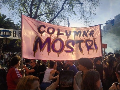 Reclaiming the Slur: “We Are All Monsters” | One of my key goals in Argentina was to learn more about the groups who organized the huge February 2025 pro-democracy march and how they worked together—or not. A number of them were members of a new intersectional activist coalition formed last year called Columna Mostri, led by feminist and LGBTQIA+ activists. The word “mostri” derives from monstruo in Spanish—monster—and reflects a reclaiming of the identity of those who live outside of social margins and are being criminalized by the Milei regime.