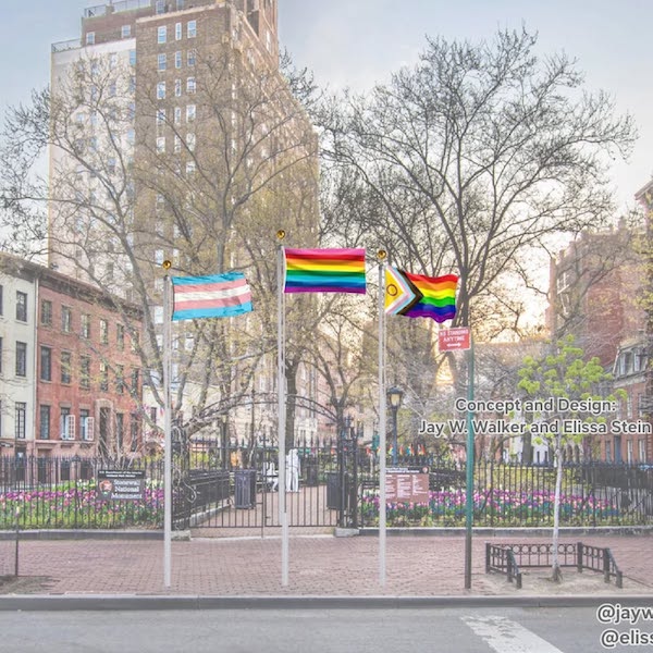 With Federal authority contained within the 0.19-acre park’s wrap-around wrought iron fencing, Walker’s February 24 Facebook and Instagram post read, in part, “I propose that three 20’ tall flagpoles be installed close to the curbline of the stretch of West 4th Street sidewalk in front of the main gate of the Stonewall National Monument to permanently display a Rainbow flag, a Trans flag, and a Progress flag. Mayor Mamdani and New York City Council, this can be done immediately on your authority.”